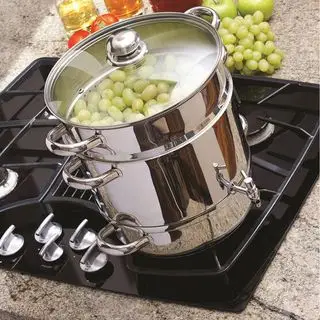Les presse-agrumes à vapeur fonctionnent en créant un jus concentré dont bon nombre de ses enzymes et, malheureusement, de ses nutriments ont été éliminés lors du processus de cuisson à la vapeur. Ils sont généralement fabriqués en acier inoxydable et utilisés directement sur une cuisinière. Ce jus concentré peut être conservé au réfrigérateur ou surgelé ou peut être utilisé comme mixeur de boissons ou pour réaliser des confitures par exemple.