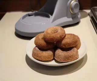 Fidèle à mon thème d'automne, la prochaine recette que j'ai décidé de préparer était celle des beignets au cidre de pomme, l'un de mes favoris d'automne de tous les temps. J'ai utilisé la palette du mixeur pour crémer ensemble le beurre ramolli et le sucre, mais le mélange continuait à être poussé sur les côtés du bol, hors de portée de l'accessoire. J'ai dû arrêter le mixeur au moins une fois par minute pour racler les parois et le fond du bol, et j'ai également remarqué qu'il devenait un peu bancal lorsque je l'ai monté à la vitesse 9, en se balançant un peu d'avant en arrière. Heureusement, les ventouses situées au bas de l'appareil le maintenaient en place sur le comptoir.